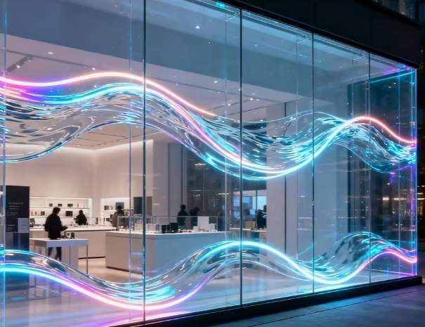شاشة عرض زجاجية شفافة LED لتطبيقات الإضاءة الداخلية والديكور.
